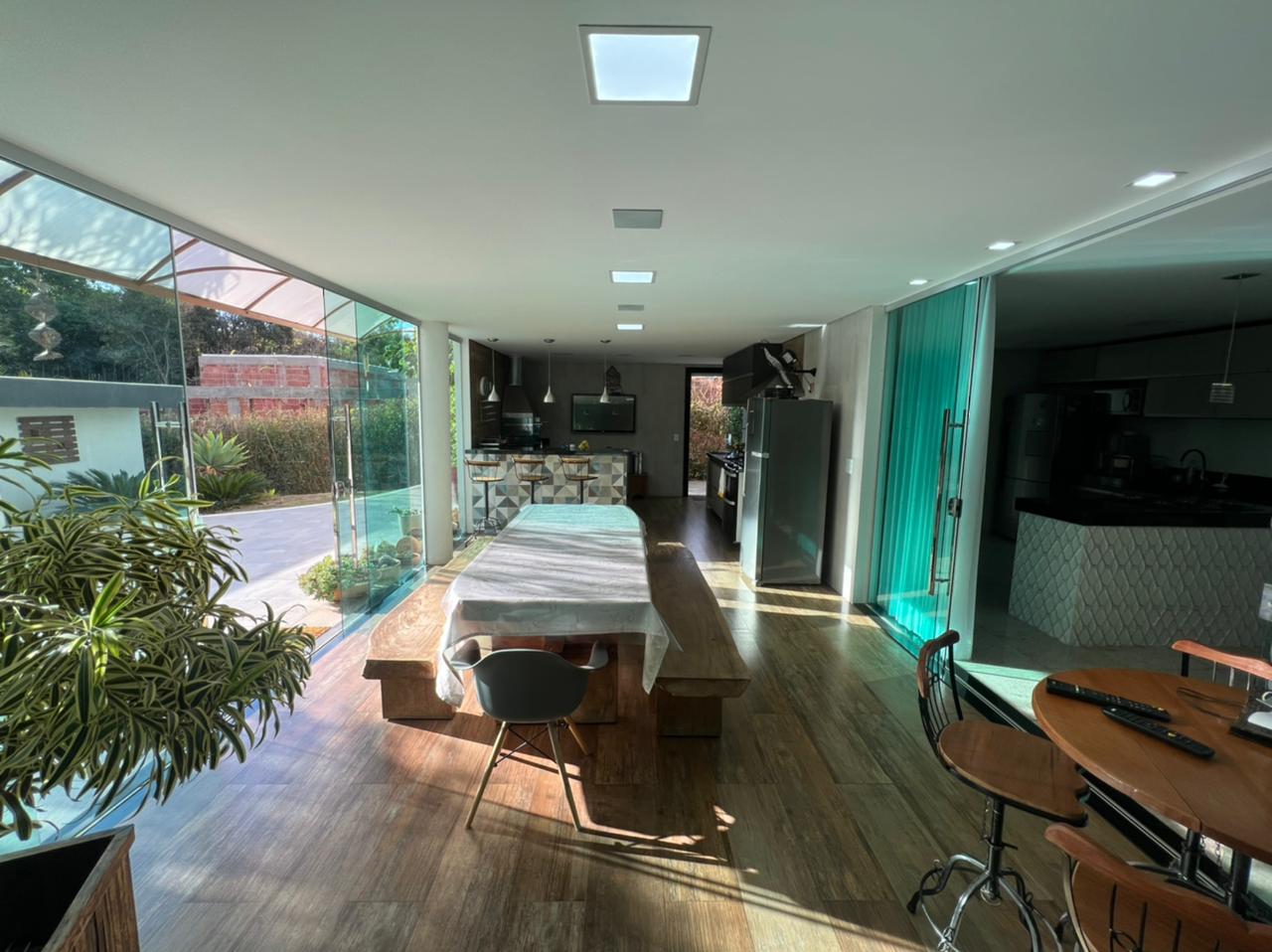 Casa Imponente com sala ampla para dois ambientes com Pé direito duplo com integração a cozinha americana.