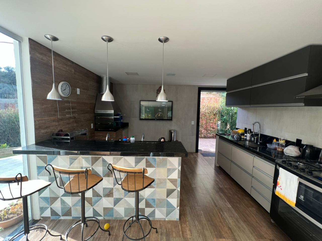 🎯Área gourmet já montada com lindo armários planejados, churrasqueira com integração com a área interna e área da piscina.